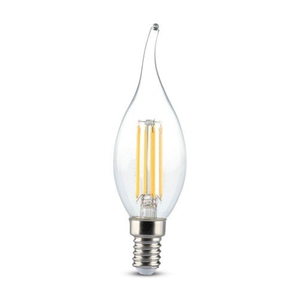 LED lámpa , égő , izzószálas hatás , filament , gyertya , láng , E14 foglalat , 4 Watt , meleg fehér , borostyán sárga