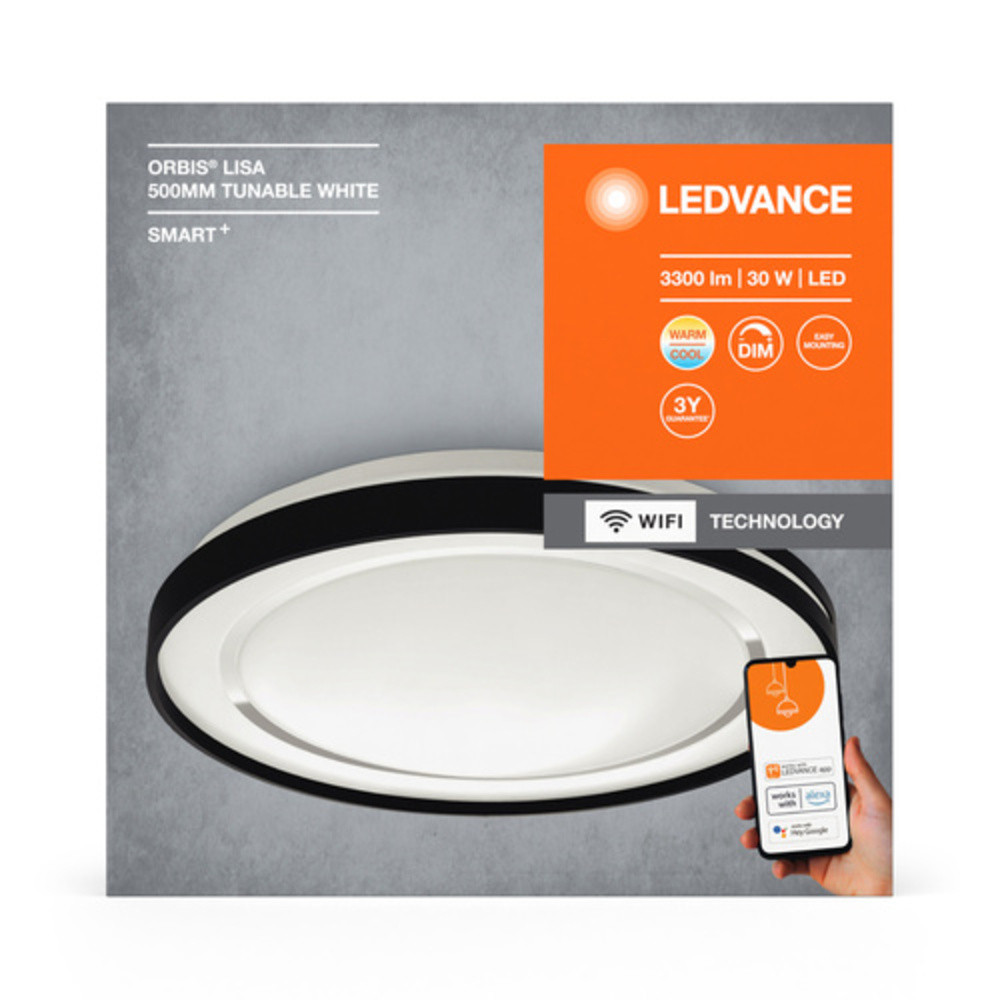 Ledvance Smart+ WIFI intelligens mennyezeti LED lámpa, állítható színhőmérséklettel, 30 W, fekete színben (Orbis Lisa)