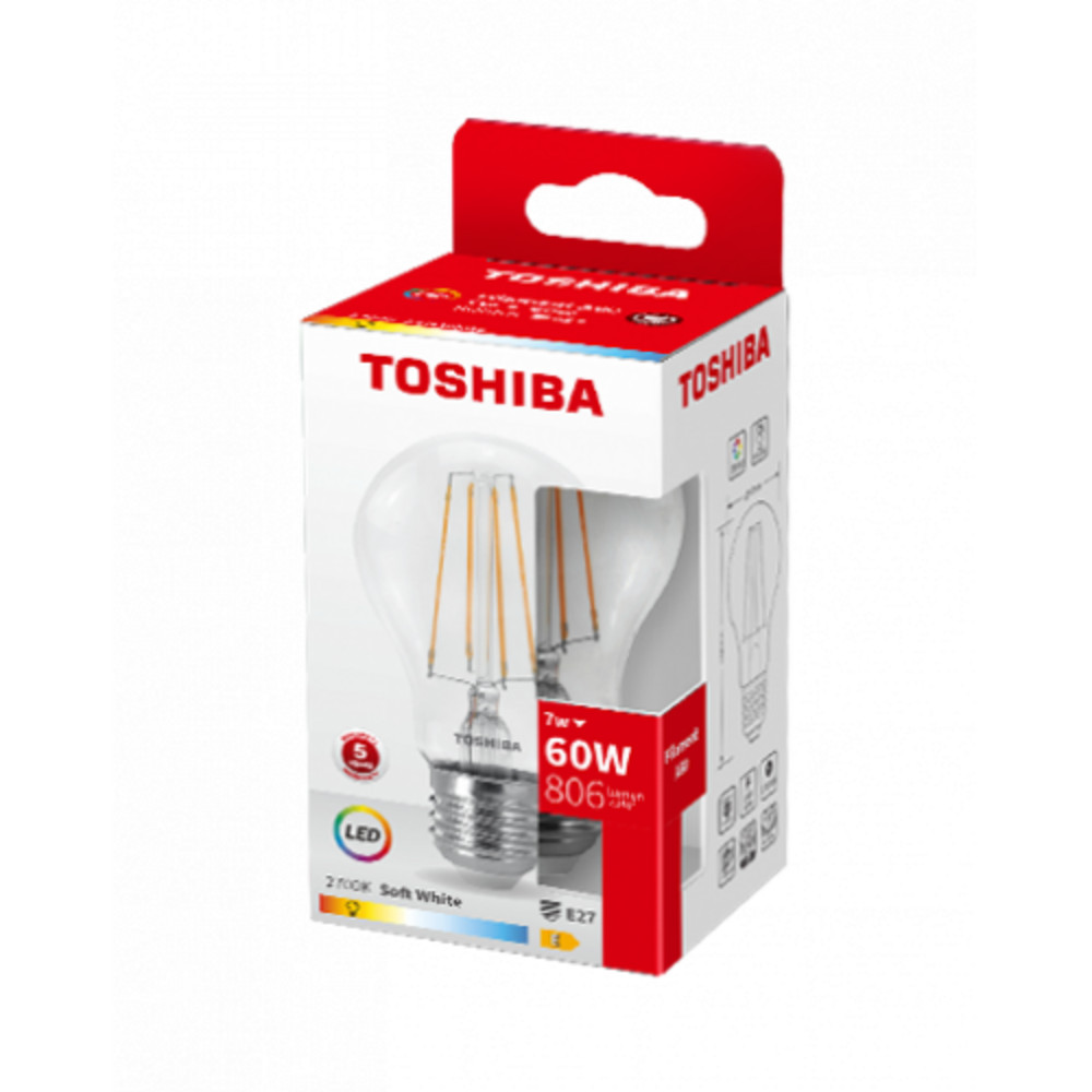 LED lámpa , égő , izzószálás hatás , filament , E27 foglalat , 7 Watt , meleg fehér , TOSHIBA , 5 év garancia
