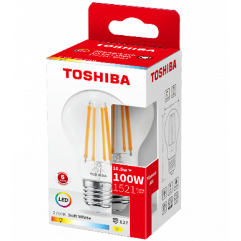 LED lámpa , égő , izzószálás hatás , filament , E27 foglalat , 10.5 Watt , meleg fehér , TOSHIBA , 5 év garancia
