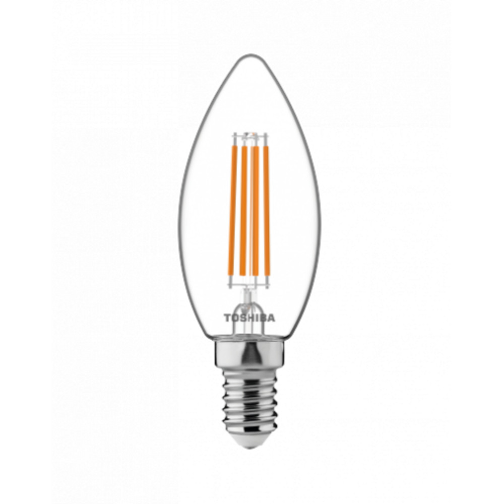 LED lámpa , égő , izzószálás hatás , filament , gyertya , E14 foglalat , 4.5 Watt , meleg fehér , TOSHIBA , 5 év garancia