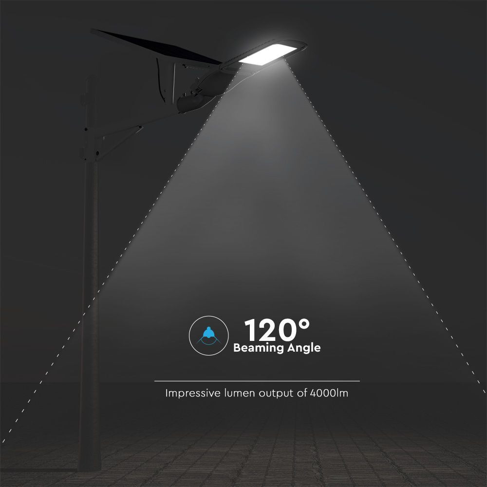 Szolár LED utcai lámpa, 4000K, természetes fehér, 3000lm, 120°, szürke, CRI>80, IP65, V-TAC, 7837
