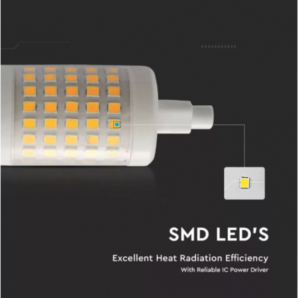 Az R7s foglalatnak köszönhetően könnyen telepíthető különböző lámpatestekbe, és a LED technológia biztosítja az alacsony energiaköltségeket és hosszú élettartamot. A V-TAC LED lámpa egyaránt kombinálja a modern stílust és a megbízható teljesítményt.
