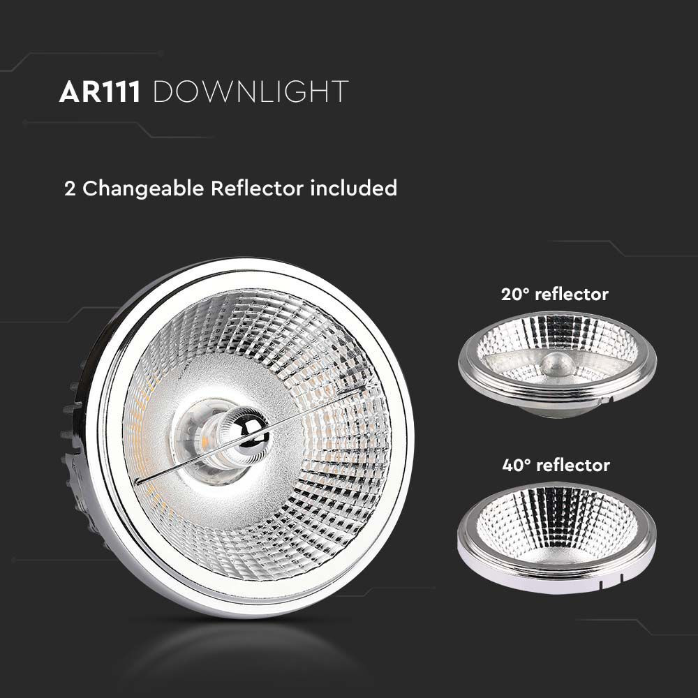 Süllyeszthető LED mélysugárzó AR111, 20w, 6400K, hideg fehér, 1700lm, 40°, ezüst, CRI>80, V-TAC, 212794
