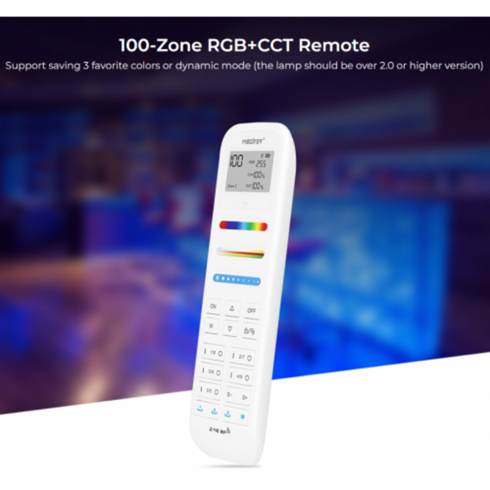 RGB-CCT , színes és fehér távirányító , állítható fehér színárnyalat , dimmer , 100 zóna , Miboxer (Mi-Light) , FUT100