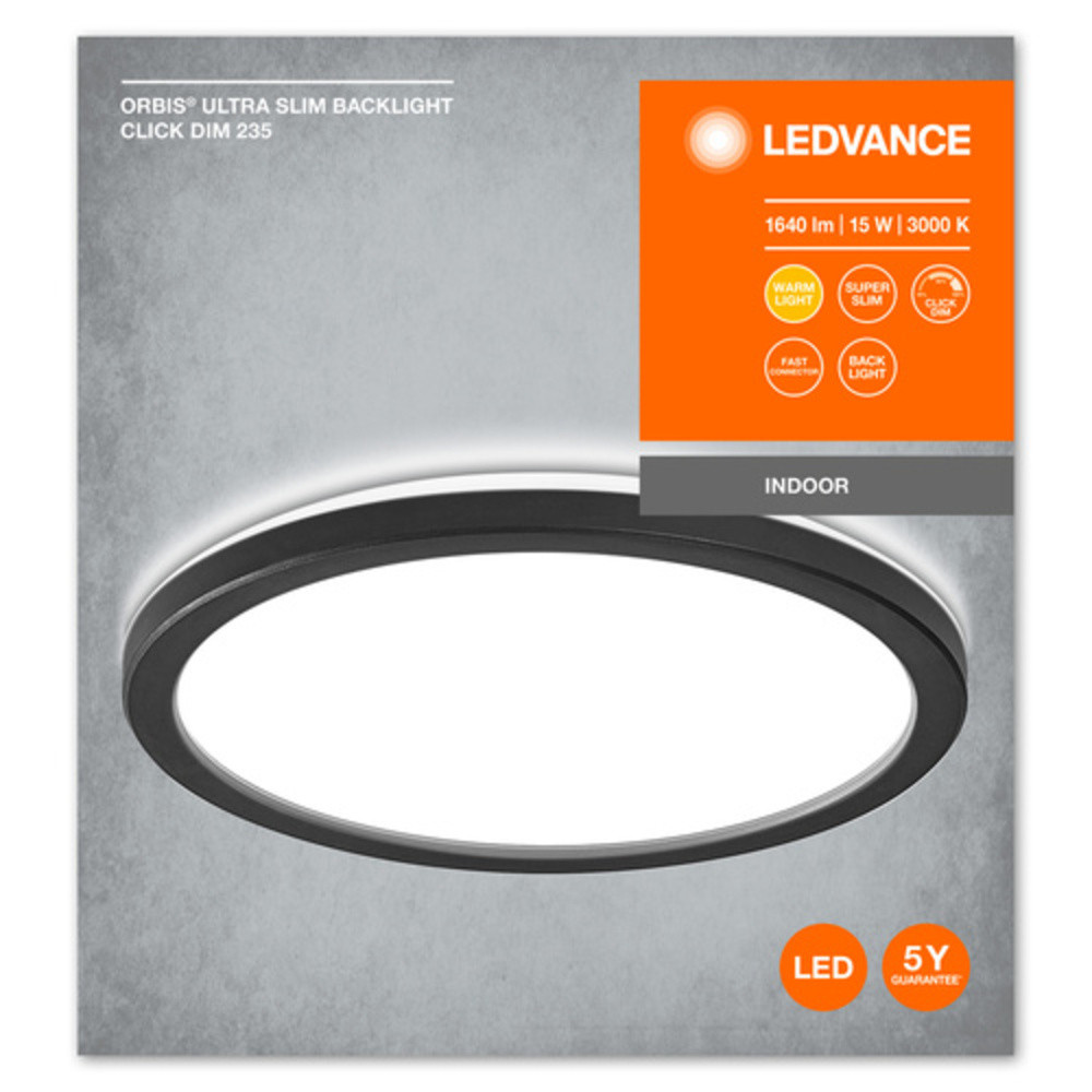 Ledvance Orbis Ultra Slim Backlight kapcsolóval szabályozható mennyezeti LED lámpa, 15W, fekete