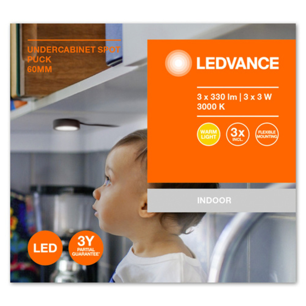 Ledvance Undercabinet Spot bútorvilágító LED lámpa, 3 W, melegfehér, fekete, 3 darabos