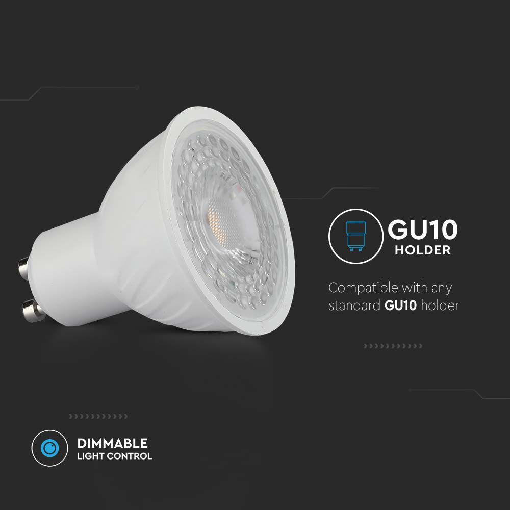 LED spot égő Samsung chippel, 6w, 6500K, hideg fehér, 445lm, GU10, 110°, CRI>80, V-TAC, 21194