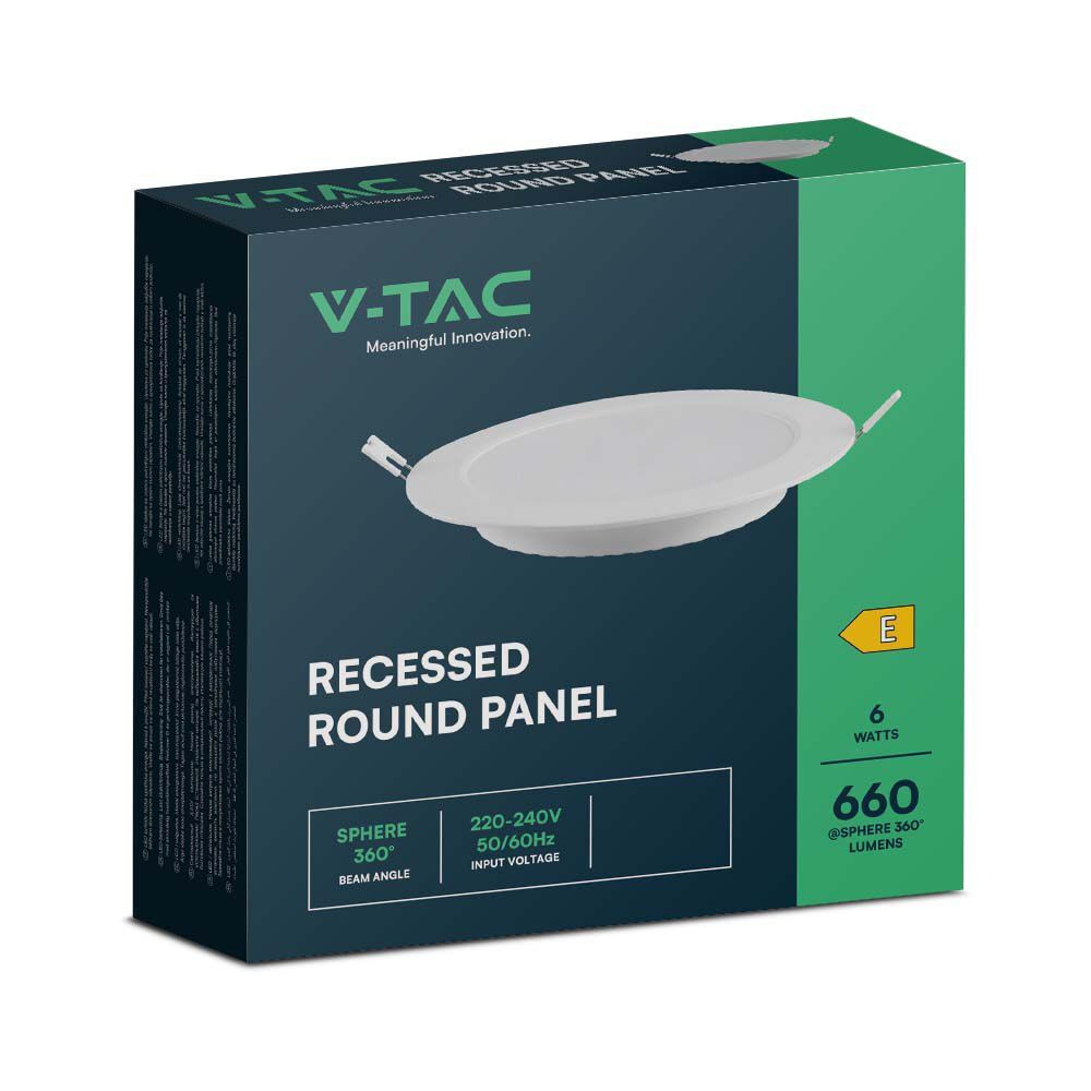 LED mini panel, süllyesztett, 6w, 6500K, hideg fehér, 660lm, 120°, fehér, CRI>80, V-TAC, 7860