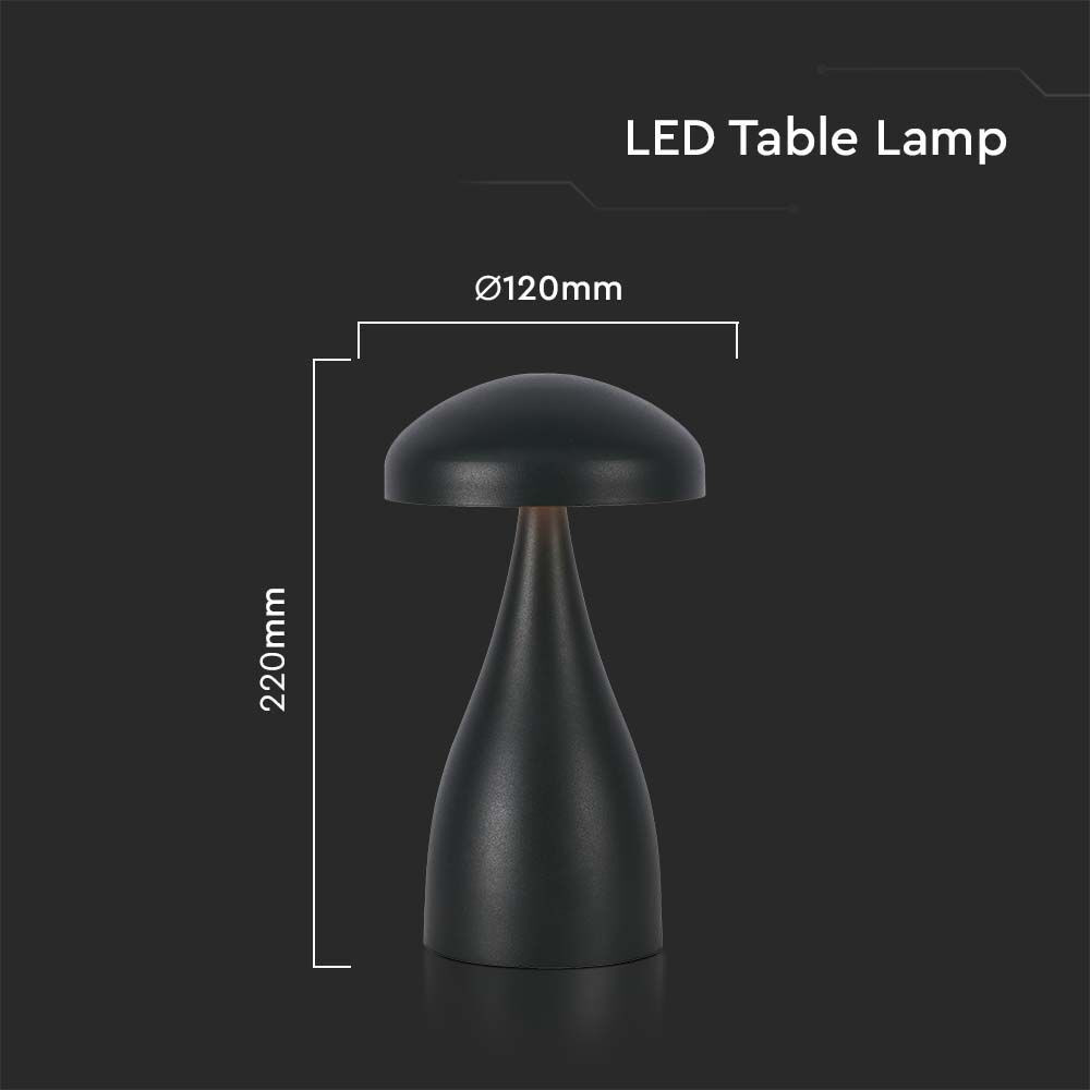 Újratölthető asztali design lámpa, 1w, CCT, 55lm, 120°, fekete, dimmelhető, V-TAC, 7895