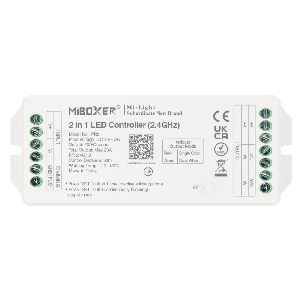 Univerzális csoport (zóna) vezérlő , 2in1 , monokróm/ CCT , dimmelhető , group control , 2,4 GHz , DC12-48V , SMART , Miboxer (Mi-Light) , PR2