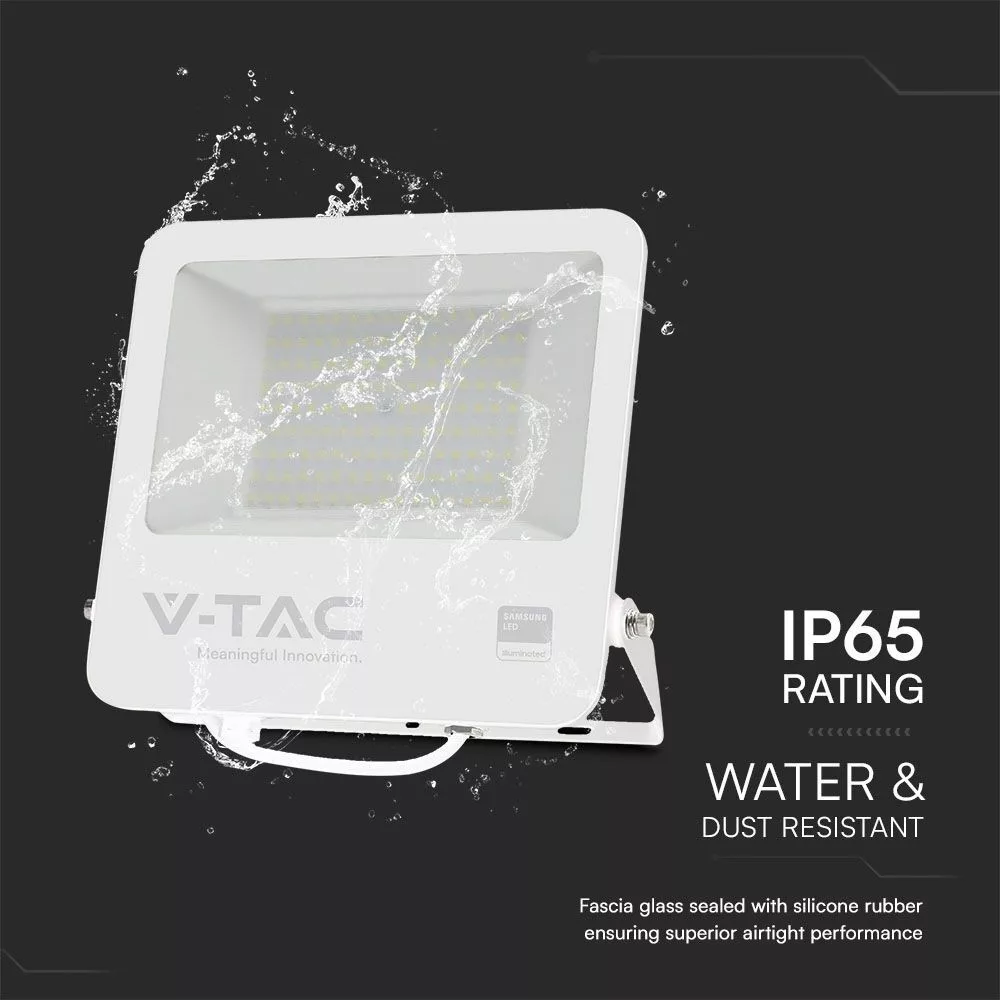 LED reflektor Slimline PRO, 100w, 6500K, hideg fehér, 10000lm, 115°, fehér, CRI>70, IP65, V-TAC, 23443