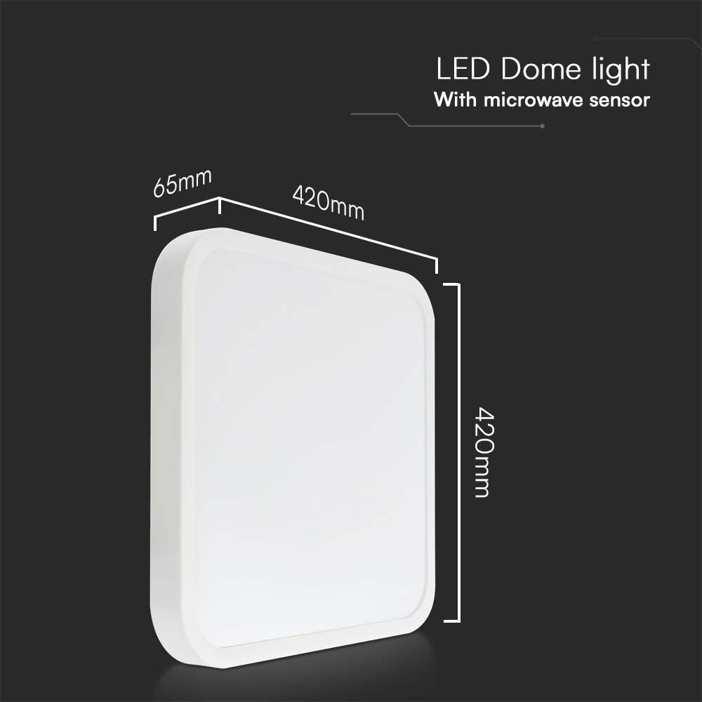 Kültéri LED mennyezeti lámpa mozgásérzékelős Négyzet alakú, 36w, 4000K, természetes fehér, 3820lm, 120°, fehér, CRI>80, IP44, V-TAC, 76681