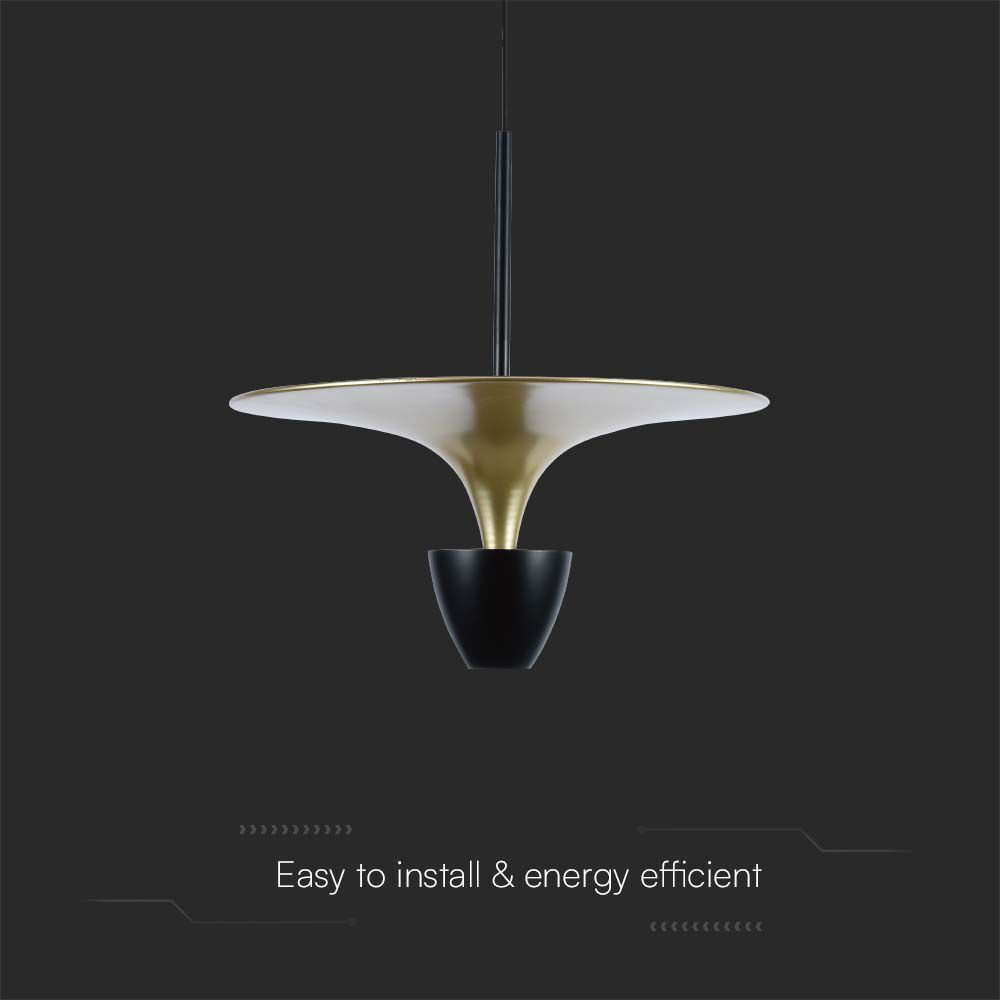 Designer függeszték, 9w, 3000K, meleg fehér, 1000lm, 120°, fekete, arany, CRI>80, V-TAC, 10086