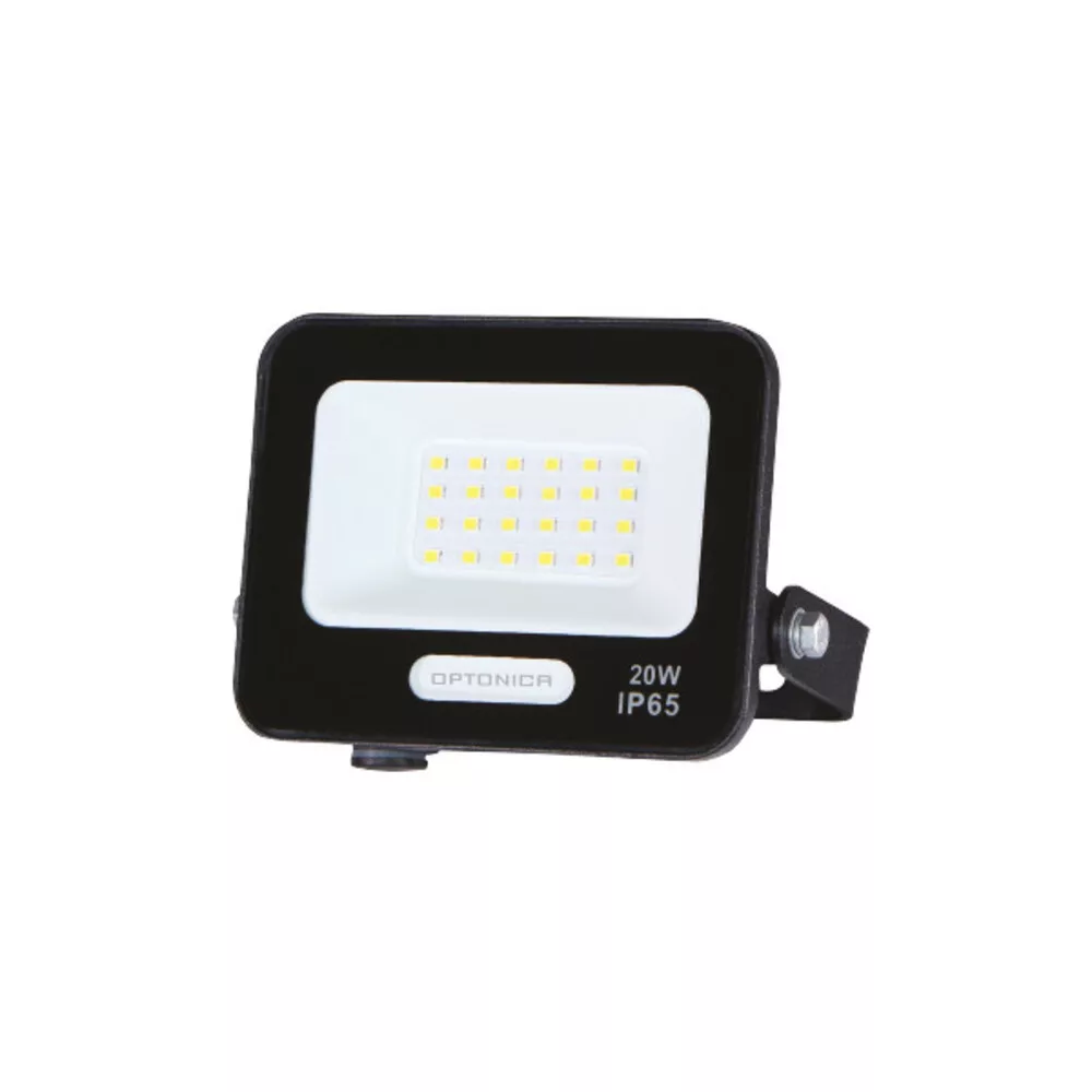 Optonica LED SMD reflektor, fekete kivitel, IP65 védettséggel — 20 W teljesítmény, 4000 K (természetes fehér) színhőmérséklet és 1800 lm fényáram. Az SMD LED technológia egyenletes, erős megvilágítást és hosszú élettartamot biztosít alacsony energiafelhasználás mellett. Az IP65 besorolás por- és vízállóságot garantál, ezért a készülék kültéri környezetben (homlokzatok, kertek, udvarok, parkolók, biztonsági világítás) egyaránt alkalmazható. A masszív, fekete ház esztétikus megjelenést biztosít, a készülék 15 cm-es beépített kábellel szerelt, így gyors és egyszerű csatlakoztatást tesz lehetővé. Ideális választás mind üzleti, mind lakossági felhasználásra, ahol megbízható, természetes fényű kültéri világításra van szükség.