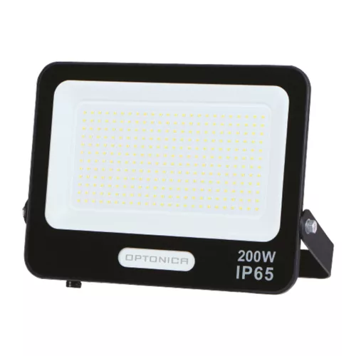 Optonica LED SMD reflektor, fekete kivitel, IP65 védettség, 30 cm-es kábellel, 200W, 6000K (hideg fehér), 18000 lm