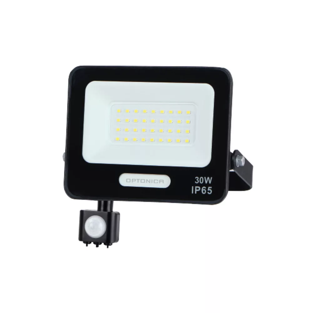 Optonica LED SMD reflektor, 30W, 6000K (hideg fehér), 2700 lm — beépített érzékelővel és fekete házzal