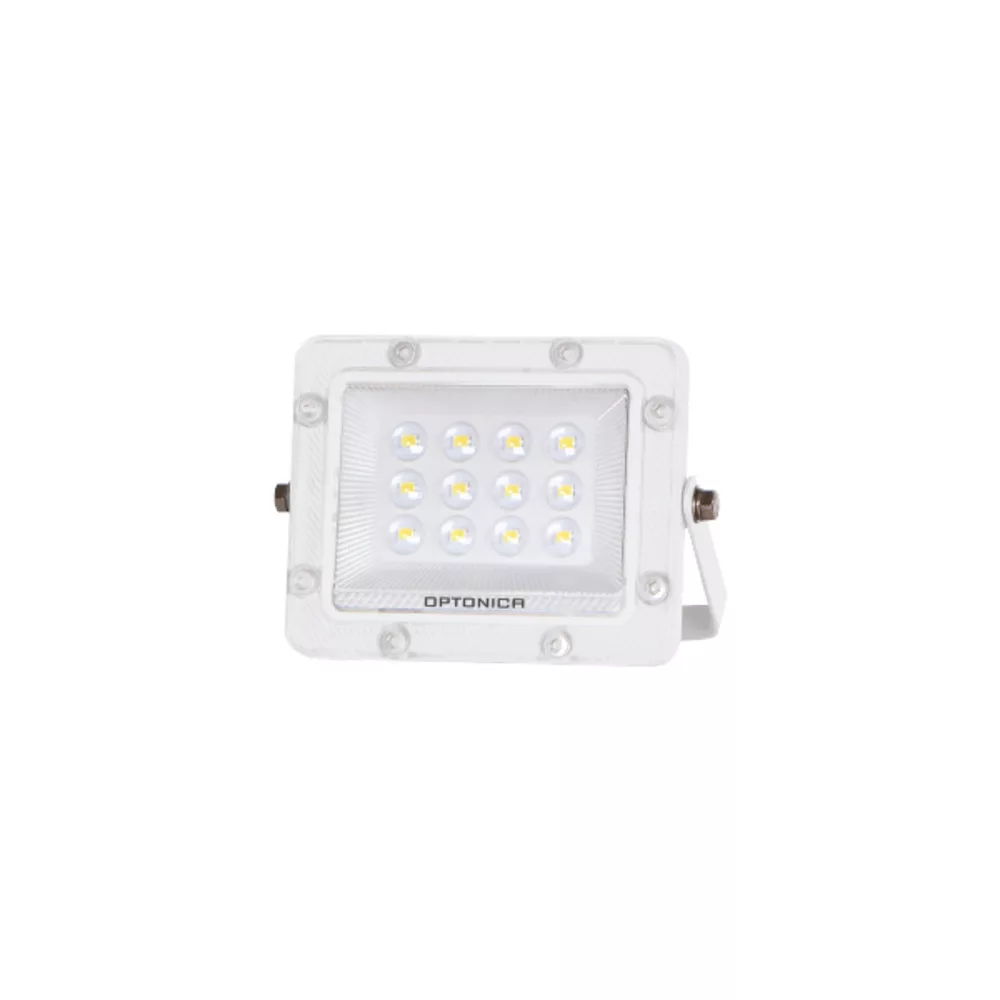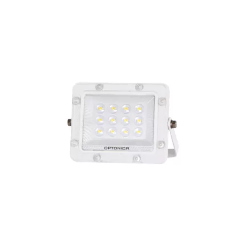 Kompakt, fehér kivitelű LED SMD reflektor, IP65 védelemmel, LUMILEDS chip technológiával a megbízható és hatékony világítás érdekében. 10 W fogyasztás mellett 1000 lm fényáramot ad, ami megközelítőleg 100 lm/W fényhasznosításnak felel meg; a színhőmérséklet 4000 K (természetes fehér), így semleges, életszerű megvilágítást biztosít. IP65 védettsége por- és fröccsenő víz elleni védelmet nyújt, ezért különösen alkalmas kültéri használatra (homlokzatok, teraszok, kertek, biztonsági és munkaterületek). Előnyei: energiahatékonyság, hosszú élettartam, gyors indítás és alacsony karbantartási igény. Gyártó: Optonica.