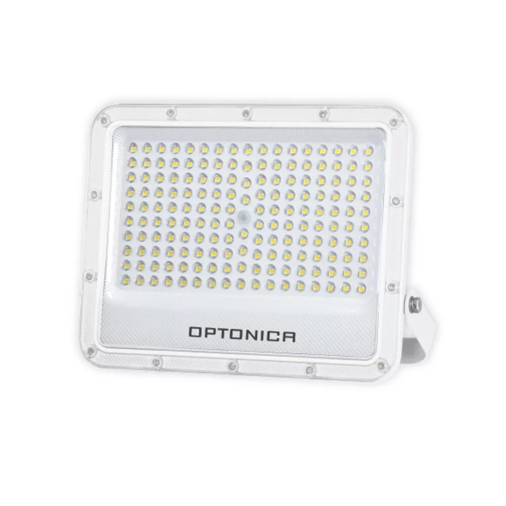 Optonica LED SMD reflektor, fehér kivitel: professzionális kültéri megoldás nagy teljesítményű világításra. A LUMILEDS SMD chipeknek köszönhetően megbízható, egyenletes fénykibocsátást biztosít 100 W teljesítménnyel és 10 000 lm fényárammal, ami kb. 100 lm/W hatékonyságnak felel meg. A 3000 K színhőmérséklet meleg fehér fényt ad, amely barátságos, ugyanakkor elegendő megvilágítást nyújt kertekben, homlokzatoknál, parkolókban és ipari területeken. IP65 védettsége biztosítja a portól és a fröccsenő víztől való védelmet, így kültéri környezetben is alkalmazható. Előnyei közé tartozik az energiatakarékosság, az azonnali teljes fényerő, valamint a hosszú élettartam és alacsony karbantartási igény.