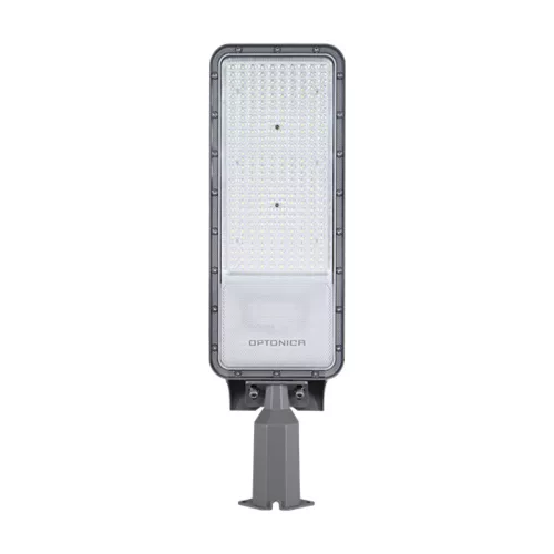 Optonica LED utcai lámpa LUMILEDS-chippel, 100 W teljesítménnyel, professzionális megoldás közterületi világításra. 12000 lm fényáram és kb. 120 lm/W fényhasznosítás magas hatékonyságot biztosít, jelentős energia-megtakarítással a hagyományos fényforrásokhoz képest. Az 4000 K természetes fehér fény semleges, kényelmes vizuális élményt és jó színvisszaadást nyújt utcák, sétányok, parkolók és kerékpárutak megvilágításához. A 75x130° optika aszimmetrikus, hosszanti fényelosztása egyenletes megvilágítást eredményez útpályák és járdák mentén, csökkentve az éles árnyékokat és a fénykibocsátás veszteségét. IP65 védettség és időjárásálló kialakítás garantálja a megbízható működést kültéren, por- és vízvédelemmel. Alacsony karbantartási igény, azonnali bekapcsolás jellemzi, és 5 év gyártói garancia biztosítja a hosszú távú üzemeltetés biztonságát.