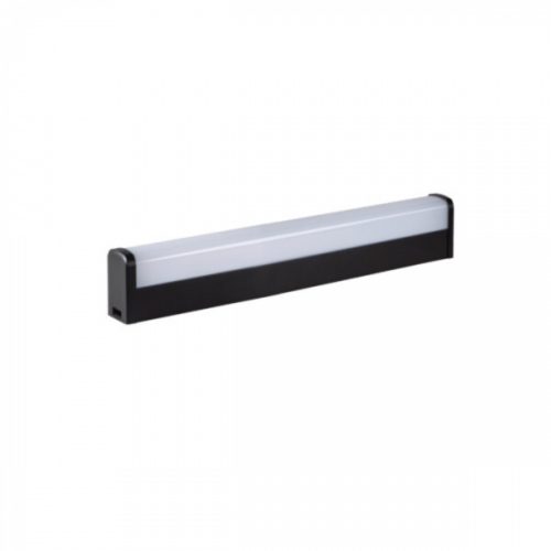 Tükör megvilágítására alkalmazható, falra vagy mennyezetre szerelhető, fekete színű LED lámpatest IP44-es védettséggel.
