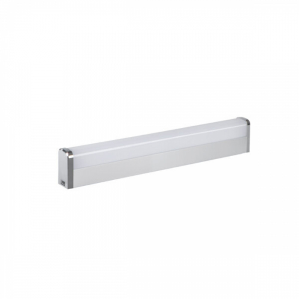 Tükör megvilágítására alkalmazható, falra vagy mennyezetre szerelhető, króm színű LED lámpatest IP44-es védettséggel.