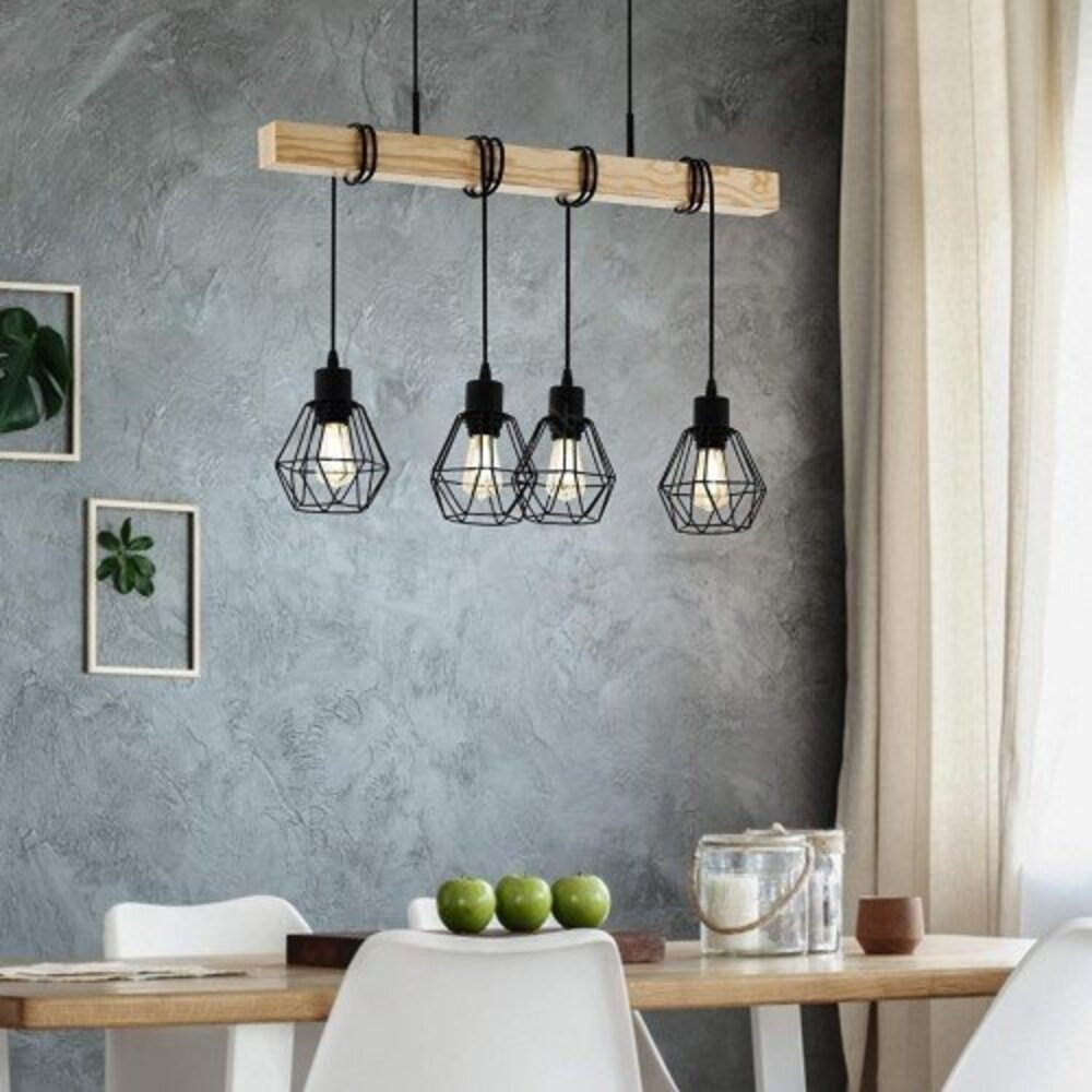 LED lámpa függeszték , mennyezeti , 4 x E27 , acél , fa , fekete , EGLO , TOWNSHEND 5 , 44075