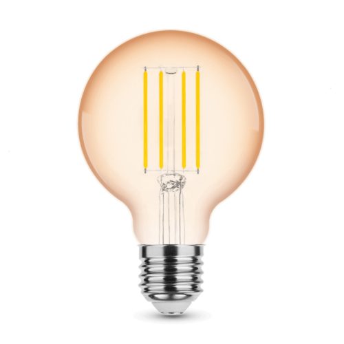 LED lámpa , égő , izzószálas hatás , filament , E27 foglalat , G80 , Edison , 4 Watt , meleg fehér , 1800K , borostyán sárga, Modee