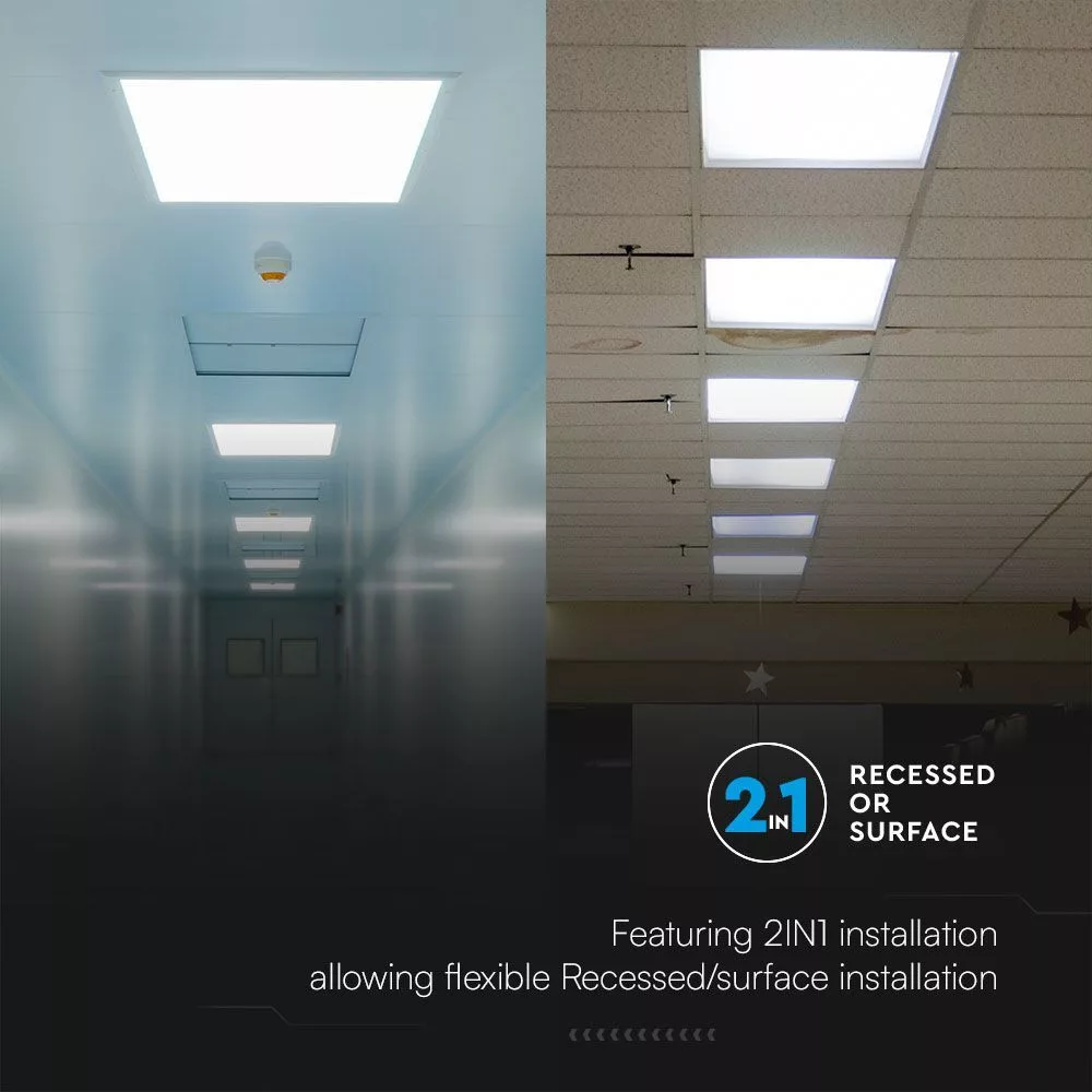 LED panel 60x60-as 2 az 1-ben, süllyesztett/falon kívüli, 36w, 4000K, természetes fehér, 4320lm, 110°, fehér, CRI>80, V-TAC, 23765